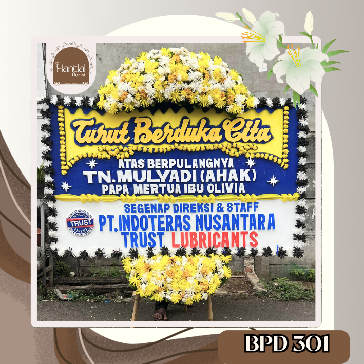 Sampaikan belasungkawa dengan penuh penghormatan melalui Bunga Papan Duka Cita Jakarta. Bunga Papan Duka Cita – BPD 301 Dibuat dari bunga segar berkualitas tinggi dengan susunan elegan, rangkaian ini menghadirkan kesan tenang, anggun, dan penuh makna. Pengiriman Bunga Papan Duka Cita Jakarta Melingkupi Wilayah Berikut